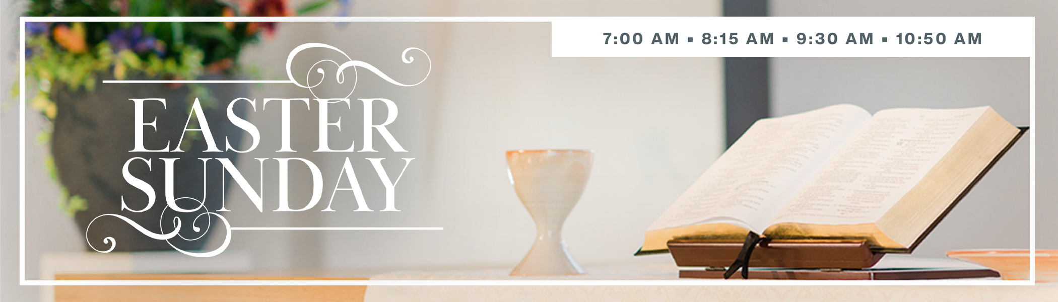 Holy Week: Good Friday 4/3 at 7:00 PM, Easter Sunday 7:00, 8:15, 9:30, 10:50 AM (Sunrise Breakfast 6:30 - 8:30 AM)