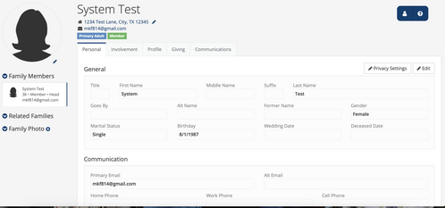 After logging into your account, you can update your profile with basic information such as address, phone number, email, individual and family photos, and more.