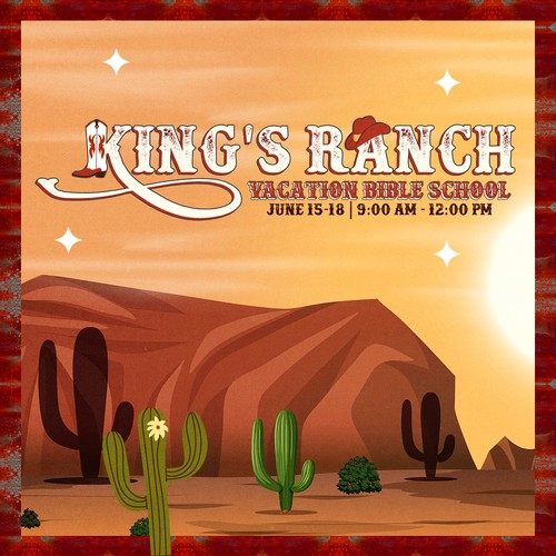 Calling all little cowboys and cowgirls to the King's Ranch this summer, June 15 - 18, for a rootin' tootin' VBS! Saddle up, gather 'round the campfire for stories, and have some fun on the frontier this year (or, in other words, your children won't want to miss out on four days of games, snacks, crafts, songs, and important Bible lessons!)
